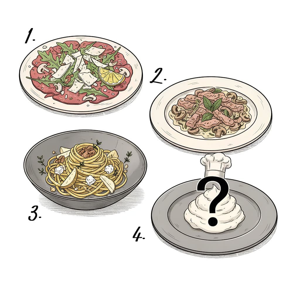 3. GANG (Bocconcini di Maiale alla Romana): Schweinestreifen, Pilze, Salbei in Weißweinsoße.